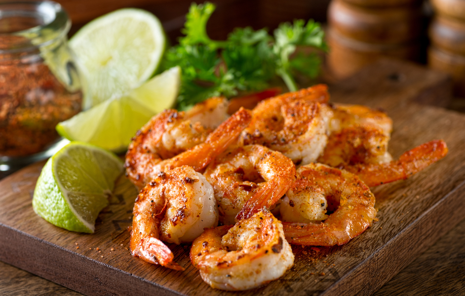 Camarones cocinados con chiles, sal y pimienta en una olla. Cubiertos con una salsa inigualable a partir de los chiles licuados con cebolla, ajo, mantequilla, tomate y aji chipote.